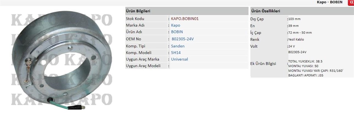 Klima Kompresör Bobini Sd5h14 24v | Kapo Bobın01