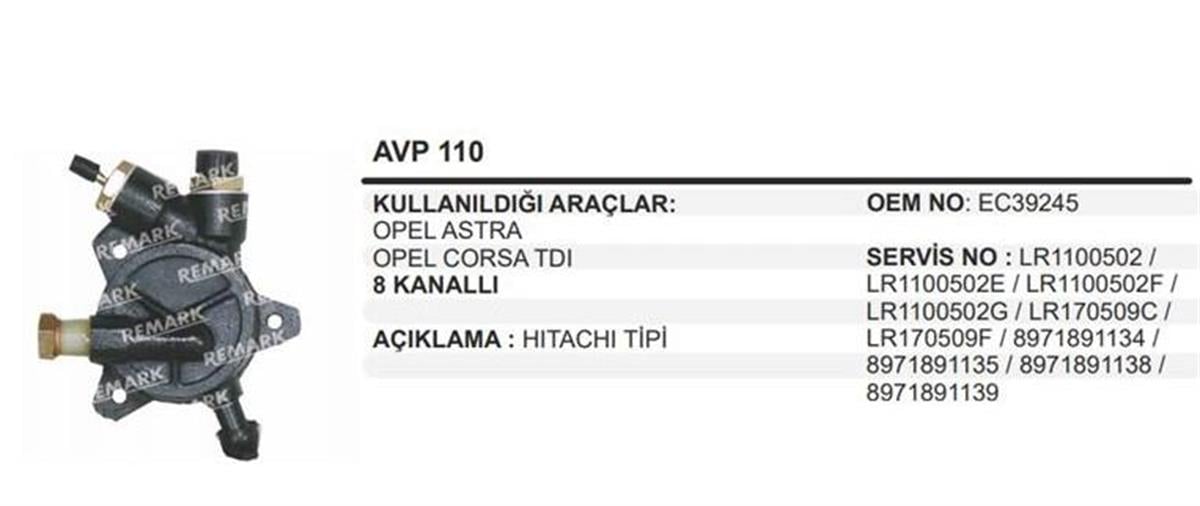 Vakum Pompası Opel Astra G Corsa C Combo 1.7 Tsı Avp110 | Martek Avp110